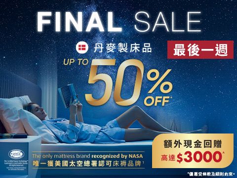 專門店購買任何型號丹麥製床褥,即可享高達24個月免息分期,每月低至$580*,輕鬆享受NASA認可@嘅舒壓適睡眠體驗!